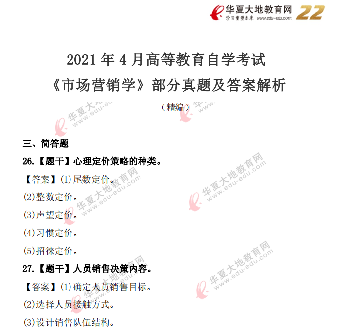 资料简介:2021年4月自考真题—《市场营销学》