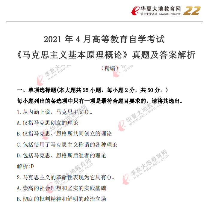 资料简介:2021年4月自考真题—《马克思主义基本原理概论》