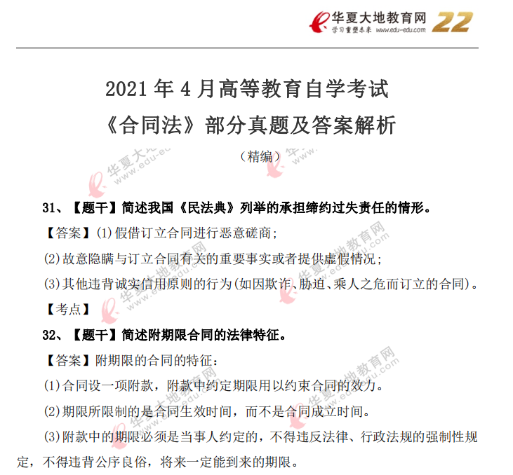 资料简介:2021年4月自考真题—《合同法》