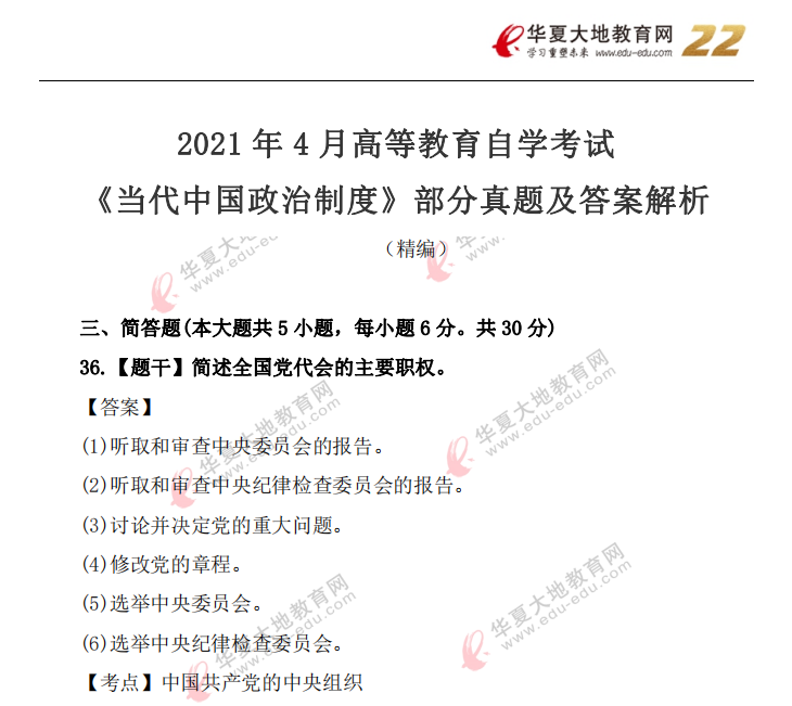 资料简介:2021年4月自考真题—《当代中国政治制度》