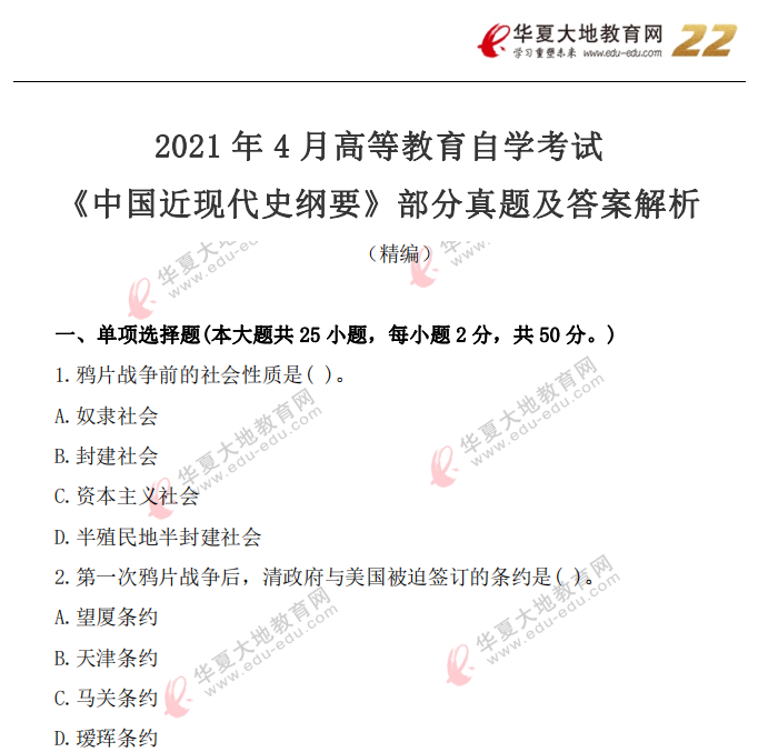 资料简介:2021年4月自考真题—《中国近现代史纲要》