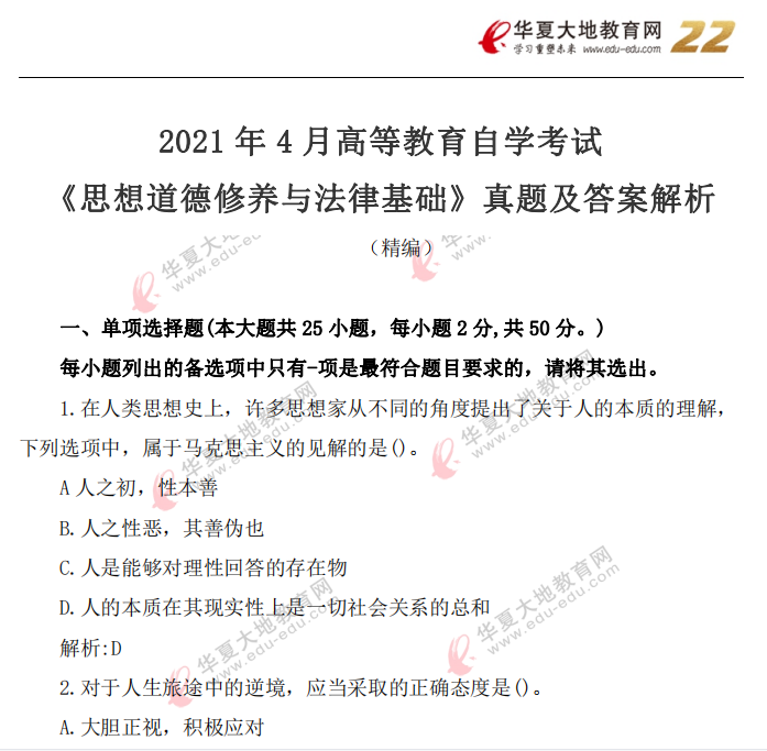 资料简介:2021年4月自考真题—《思想道德修养与法律基础》