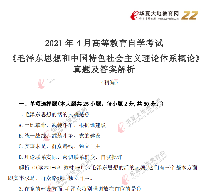 资料简介:2021年4月自考真题—《毛泽东思想和中国特色社会主义理论体系概论》