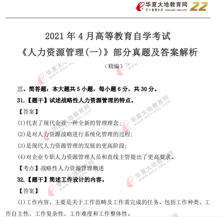 资料简介:2021年4月自考真题—《人力资源管理(一)》
