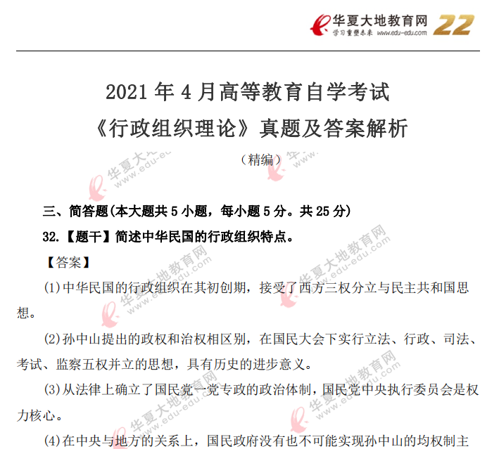 资料简介:2021年4月自考真题—《行政组织理论》