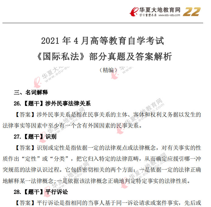 资料简介:2021年4月自考真题—《国际私法》