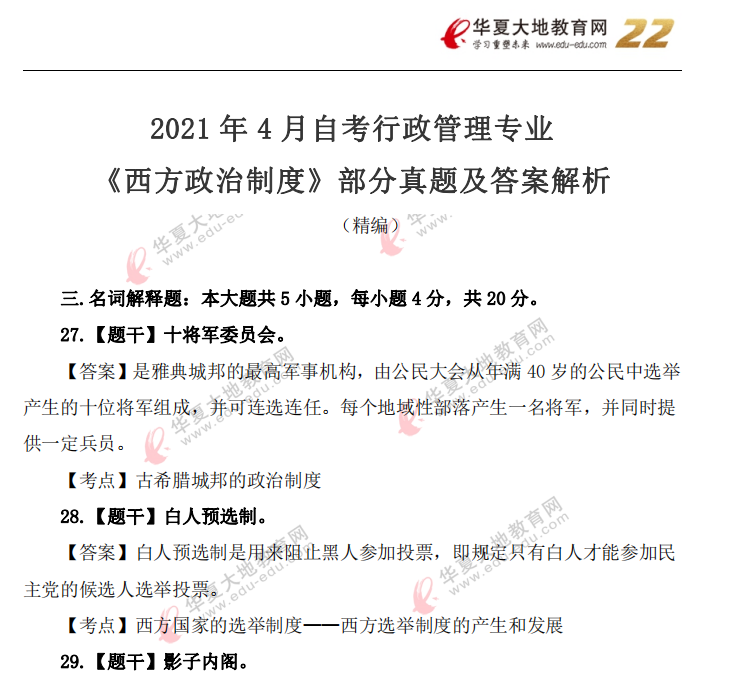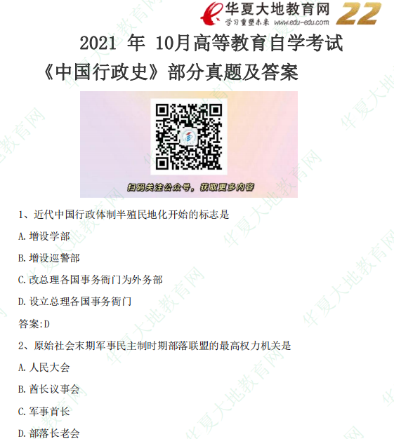 资料简介:2021年10月自考真题—《中国行政史》