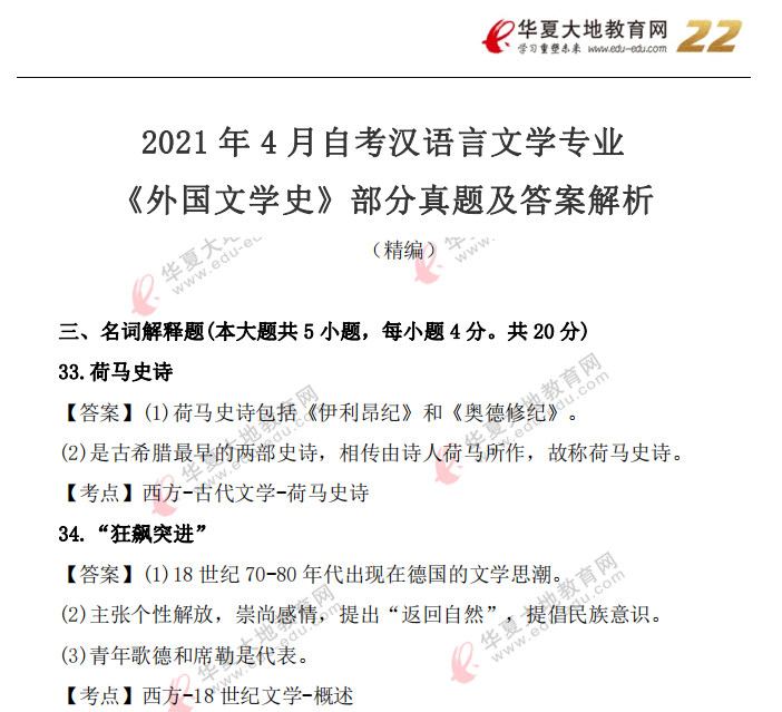 资料简介:2021年4月自考真题—《外国文学史》