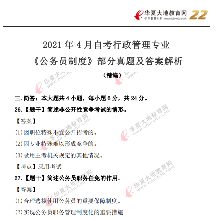 资料简介:2019年4月真题及答案—公务员制度(代码:01848)
