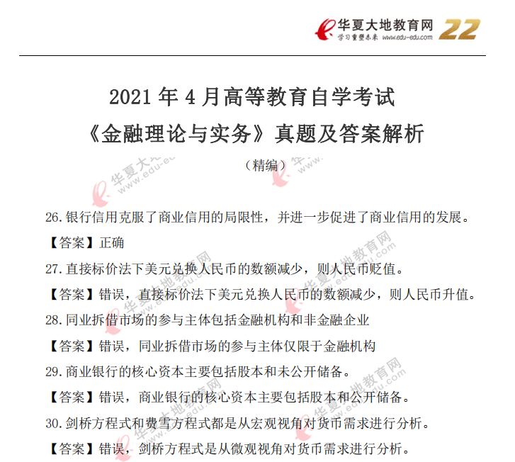 资料简介:2021年4月自考真题—《金融理论与实务》