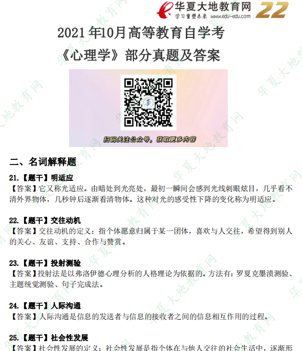资料简介:2021年10月自考真题—《心理学》