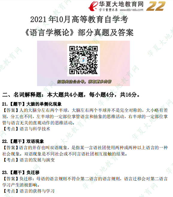 资料简介:2021年10月自考真题—《语言学概论》
