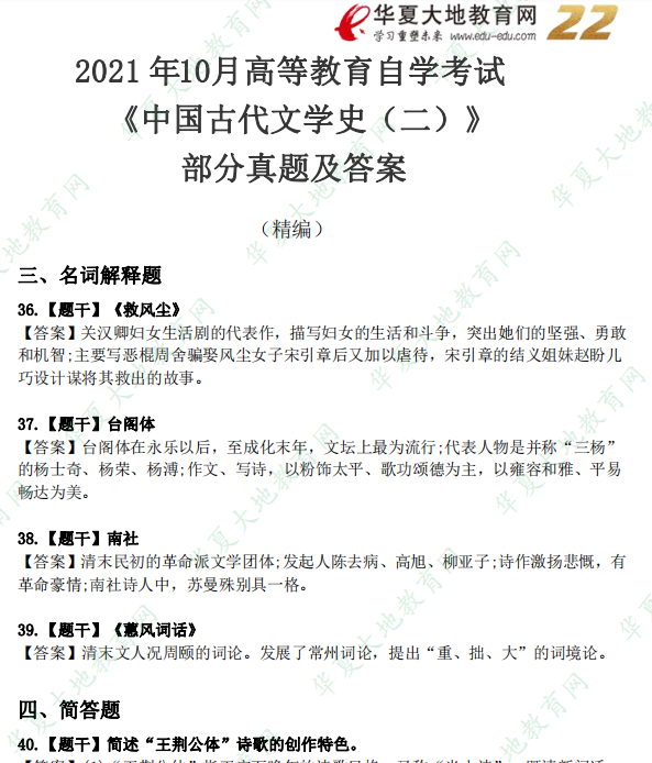 资料简介:2021年10月自考真题—《中国古代文学史(二)》