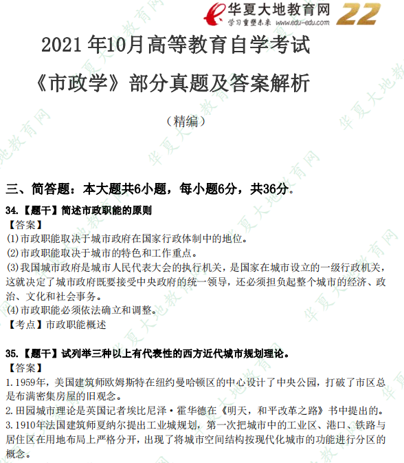 资料简介:2021年10月自考真题—《市政学》