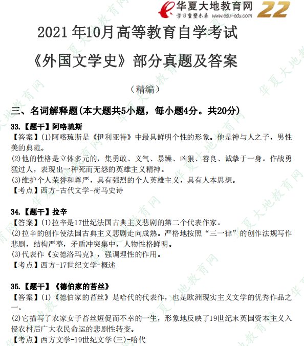 资料简介:2021年10月自考真题—《外国文学史》