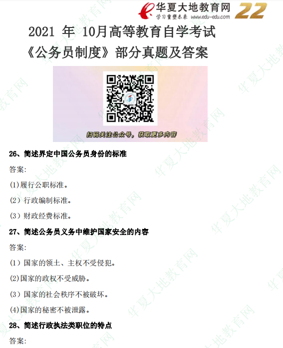 资料简介:2021年10月自考真题—《公务员制度》