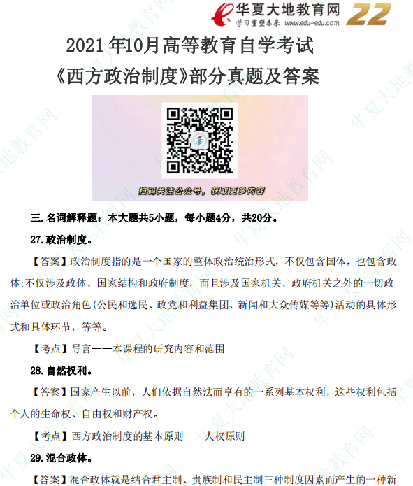 资料简介:2021年10月自考真题—《西方政治制度》