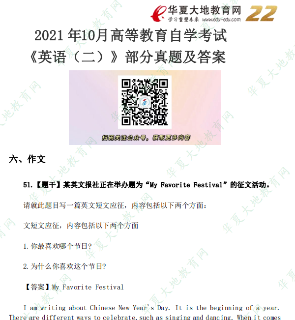 资料简介:2021年10月自考真题—《英语二》
