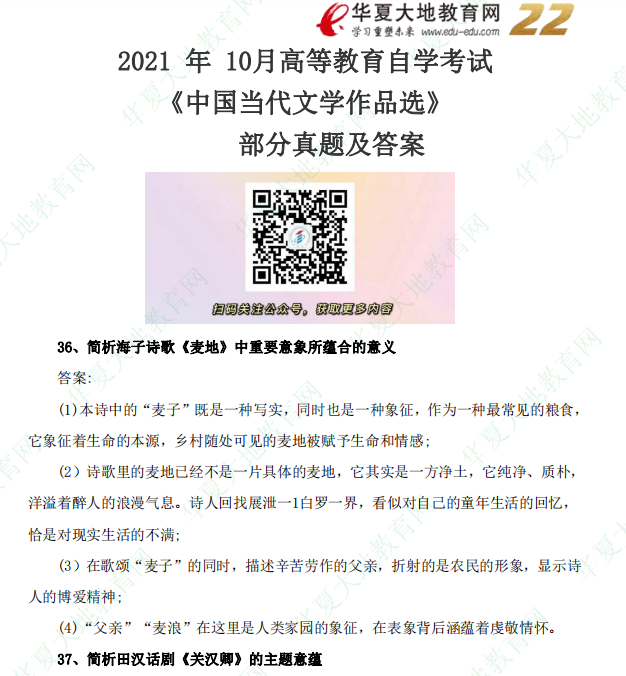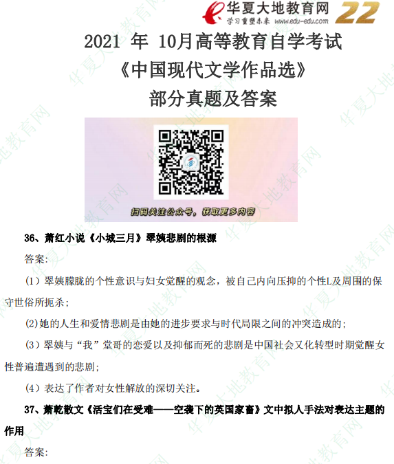 资料简介:2021年10月自考真题—《中国当代文学作品选》