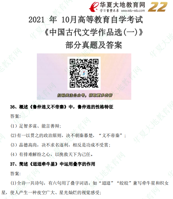 资料简介:2021年10月自考真题—《中国古代文学作品选(一)》