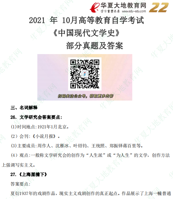 资料简介:2021年10月自考真题—《中国现代文学史》