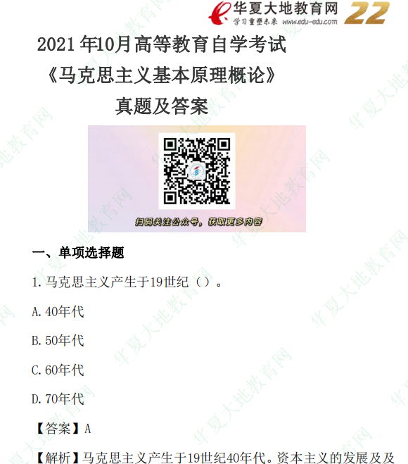 资料简介:2021年10月自考真题—《马克思主义基本原理概论》