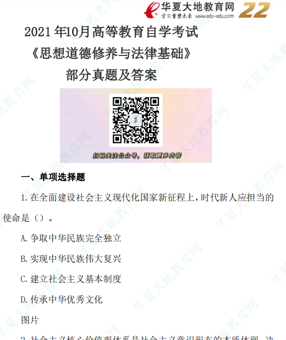 资料简介:2021年10月自考真题—《思想道德修养与法律基础》