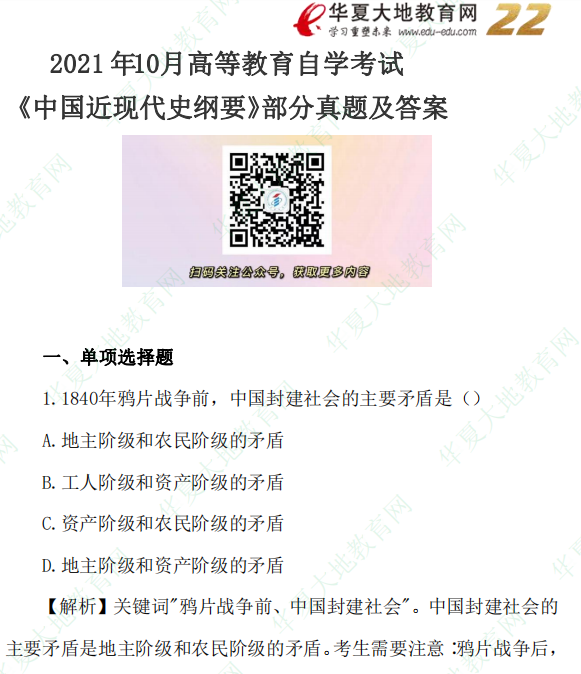 资料简介:2021年10月自考真题—《中国近现代史纲要》